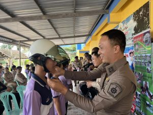 2.1 บรรนยายความรู้ในเรื่องการสวมหมวกนิรภัยฯ โดย พ.ต.อ.ปารุส สามารถ ผกก.สภ.ละอุ่น และชุดวิทยากร สภ.บางแก้ว, สภ.ละอุ่น เป็นวิทยากร