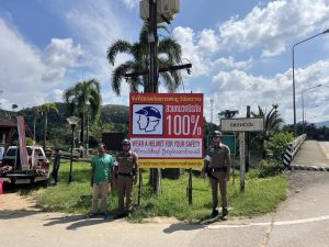 2. ในการนี้ สภ.ละอุ่นได้ทำหนังสือด่วนที่สุดถึง นายอำเภอละอุ่นและ นายกเทศมนตรีเทศบาลละอุ่น ขอการสนับสับสนุนติดตั้งป้าย “สวมหมวกนิรภัย 100 เปอร์เซ็นต์“ และดำเนินการตามข้อเสนอแนะของงานจราจรสถานีตำรวจภูธรและอุ่น