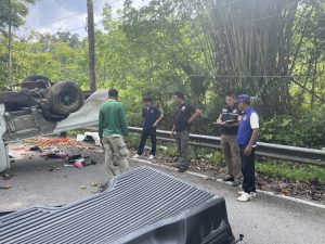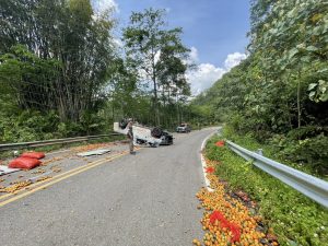 ได้สั่งการให้ ร.ต.อ.สุบรรณ หนูหยู รอง สวป.สภ.ละอุ่น พร้อมร้อยเวร 30 และ ข่ายจราจร ได้รับแจ้ง 191 รับแจ้งเหตุ รถกระบะพลิกคว่ำ ที่ทางขึ้นในวงก่อนถึงเขาปล้อง ในวง อ.ละอุ่น จ.ระนอง มีผู้บาดเจ็บ 1 ราย นำตัวส่งโรงพยาบาลละอุ่นเรียบร้อย รถที่ได้รับความเสียหายได้ติดต่อประกัน และรถลากเพื่อดำเนินการต่อไป